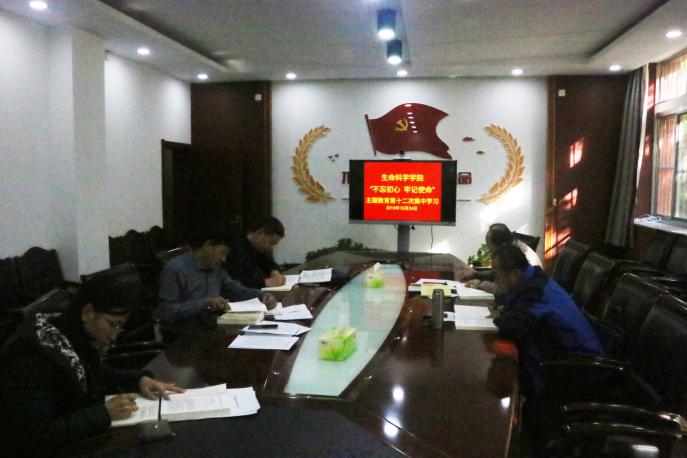 领导班子成员在学院一楼会议室召开第十二次“不忘初心、牢记使命”主题教育集中学习,院党委副书记叶志春主持,院领导参加。